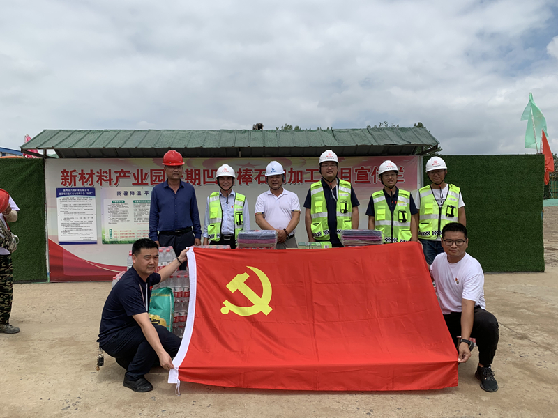 送清涼。6月22日,黨支部書記魏金龍帶領(lǐng)黨員志愿者到凹凸棒加工廠項目部、玄武巖加工廠項目部、環(huán)山道路項目部,為施工一線的黨員職工送去礦泉水、綠豆、西瓜、藿香正氣水等防暑降溫物資。